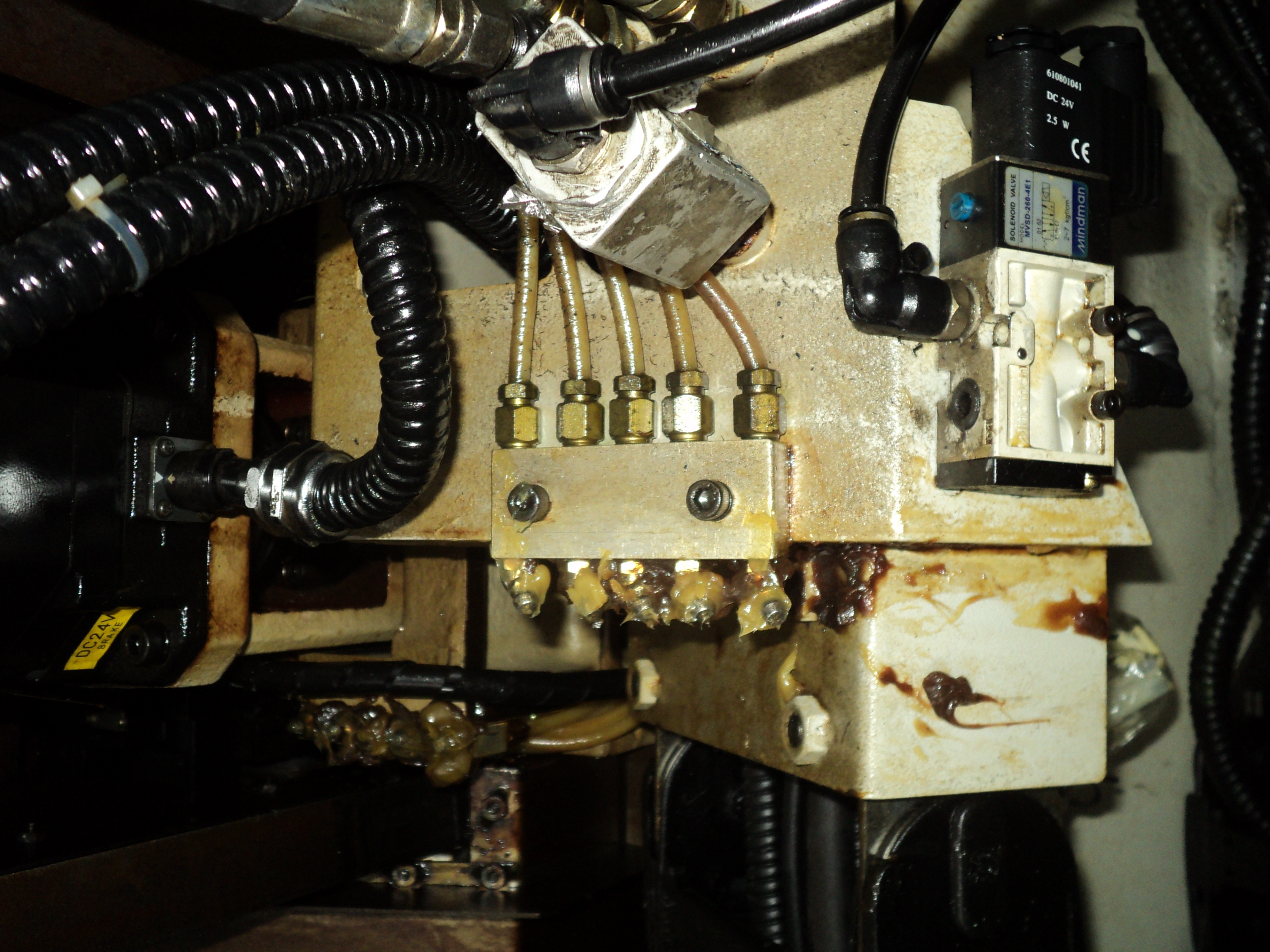 下面圖片為客戶廠內三台HARDINGE SV200車床潤滑系統改裝,裡面兩個軸向的潤滑皆使用黃油,但是必須拆開蓋板才可以使用黃油槍對黃油嘴進行給脂,客戶認為非常不方便,於是請我司進行潤滑系統改造.在三台HARDINGE皆安裝手動黃油潤滑泵,並將車床上原有的分油塊更換,讓往後進行保養作業的人員更方便更有效率.潤滑也更確實.