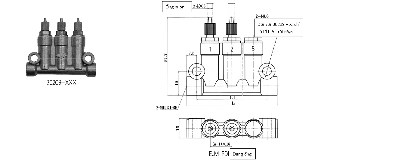 Ký hiệu | Mã số | Số miệng ra dầu | L1 | L | Lượng thải (ml/cyc) | Ghi chú |